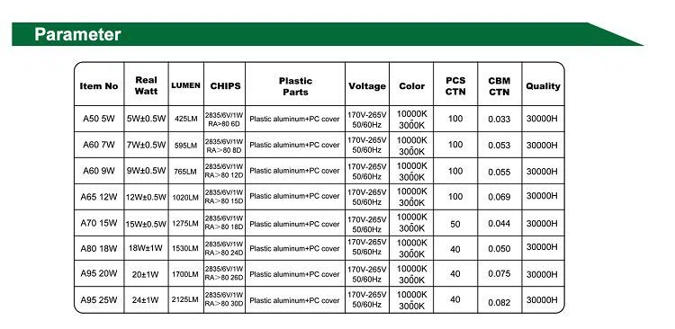 A60 is one of led A serises of bulbs the best seller ,It have 7W power,using the 8 pcs SMD 2835 with 9 voltage,lumen is 595lm efficiency than traditional 80%-90% energy-saving light source.The light is coloful,We can produce the corresponding color according to the customer's preference.